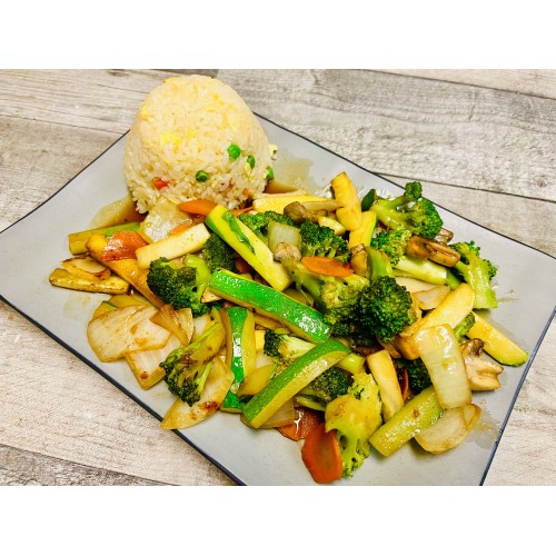 zucchini, onion, carrot, broccoli, mushroom grilled with teriyaki served fried rice, soup or salad