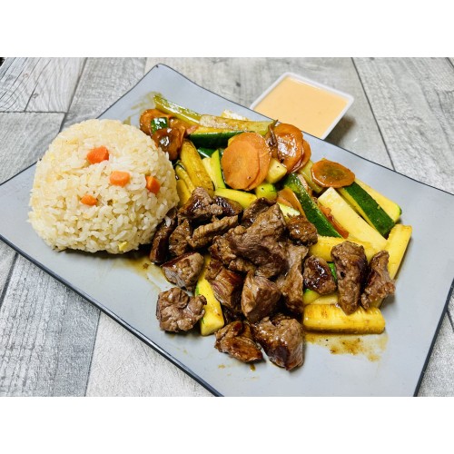 tenderloin filet mignon, mushroom grilled with teriyaki served with vegetable mix, fried rice, house soup or house salad