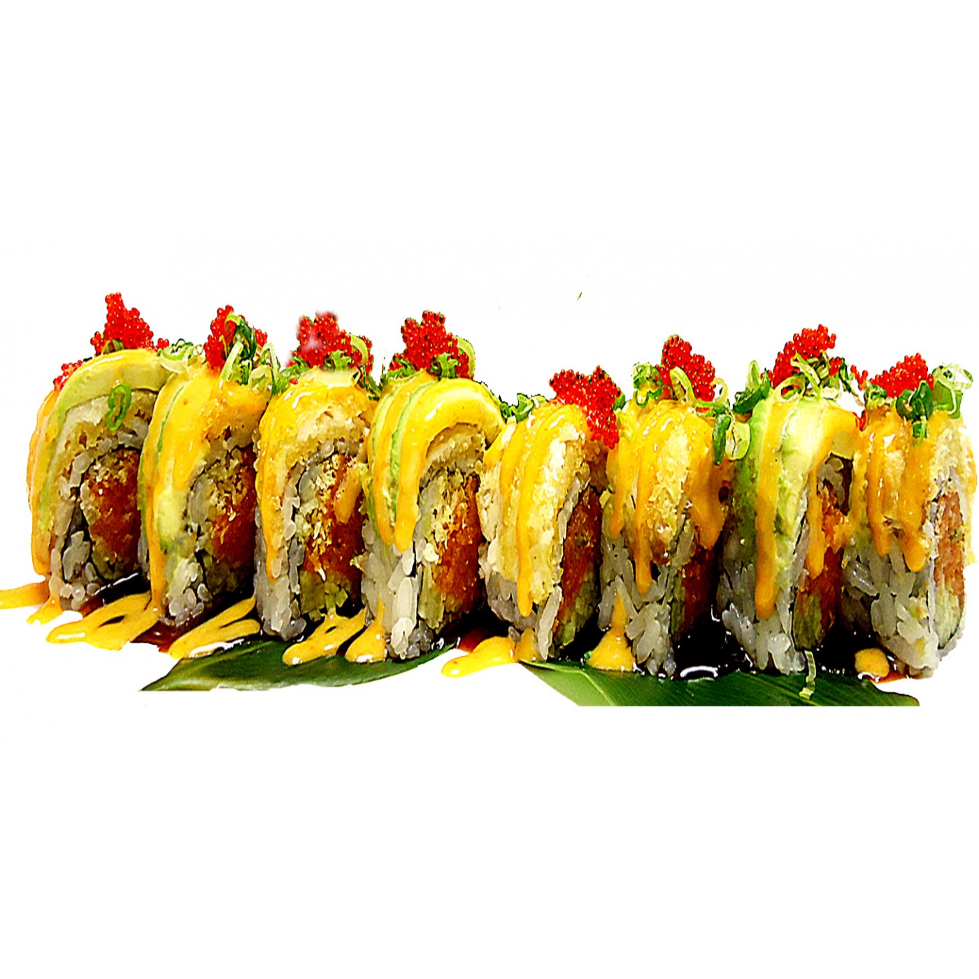 spicy tuna, cucumber & crunchy topped with fried snapper, avocado, caviar & green onion