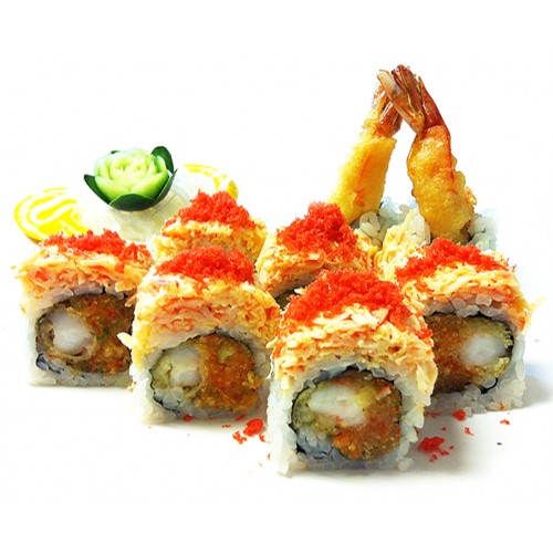 fried shrimp, mixed sweet crunchy rolled & topped with crab meat