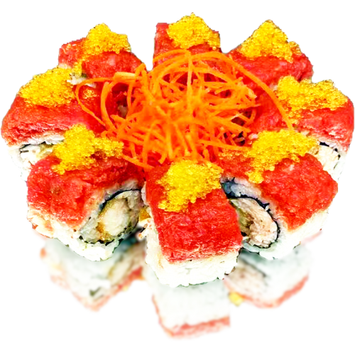 fried shrimp and crab meat mix topped with spicy tuna, cavair
