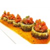 crab meat, salmon, avocado rolled and deep fried topped with spicy tuna, cavia & green onion